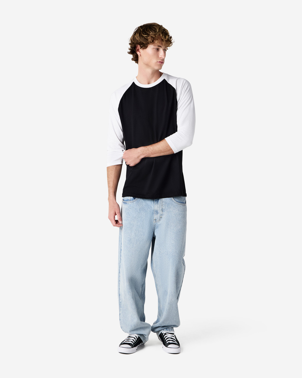 • Contrasting 3/4 raglan sleeves