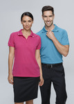 Style:  Fine pique fabric with contrast stretch tapes on shoulders, inner placket and body sides. Self-fabric collar. UPF 30+ UV protection.