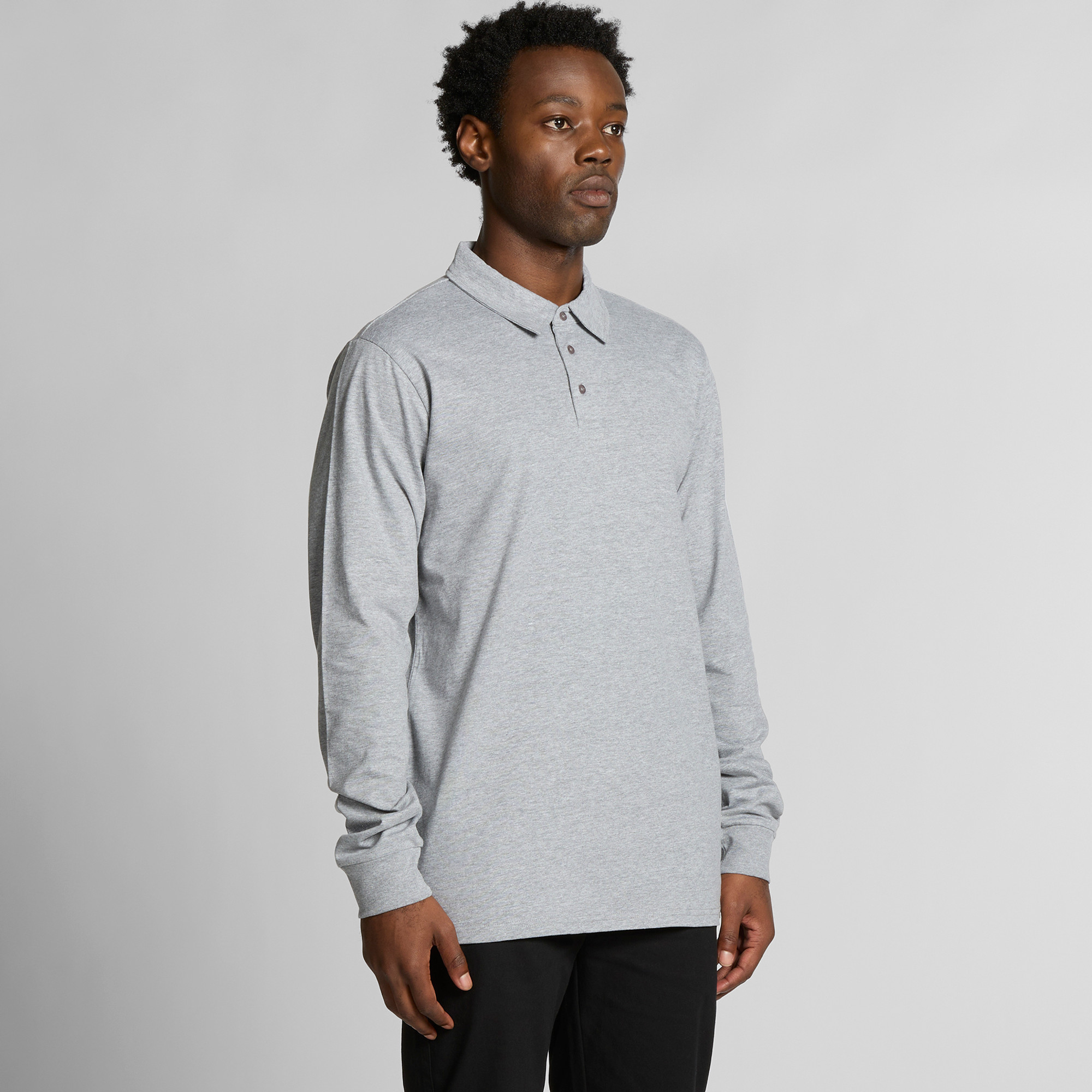 Long sleeve collared polo shirt, 3 button placket, tonal buttons, split detail at sides